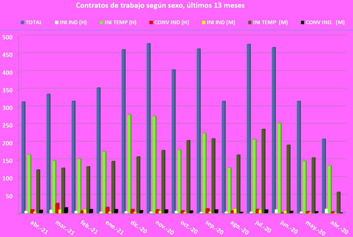 Destacar también los 31 nuevos contratos indefinidos que se firmaron en el último mes, 5 nuevos para hombres y 4 para mujeres, además de 18 contratos de hombres y 4 de mujeres que estaban vigentes en otras modalidades y se acabaron transformando también en indefinidos, en una ciudad donde los contratos temporales son mayoría en este tipo de estadísticas.