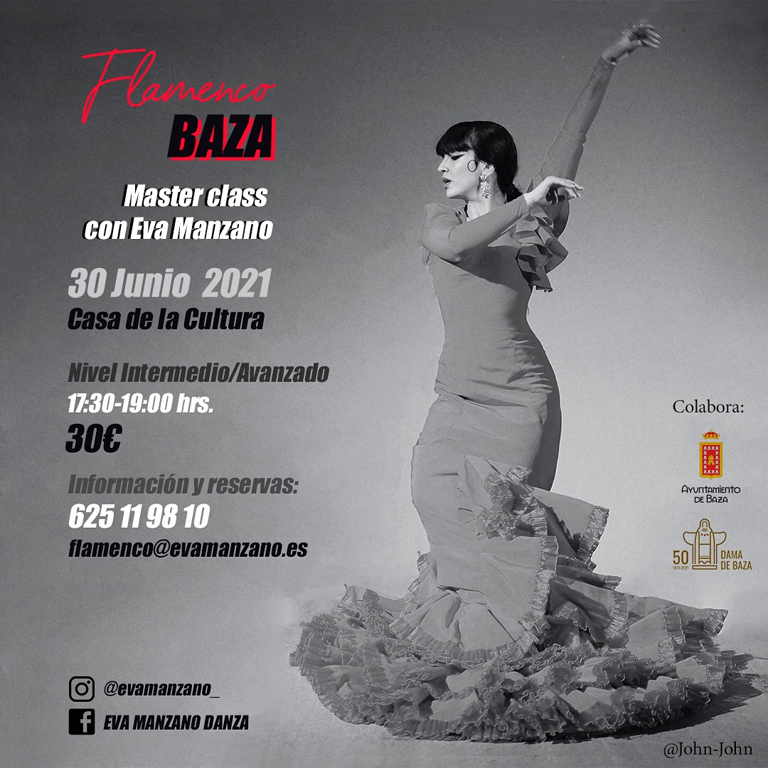 Y ahora, Eva Manzano vuelve a esa tierra que nunca olvida, a Baza, dispuesta a transmitir su arte en un taller que impartirá, en colaboración con el Ayuntamiento bastetano, en forma de master class, el próximo 300de junio, de 17:30 a 19:00 h. a alumnos de nivel intermedio/avanzado que deseen participar de esta acción formativa, con matrícula al precio de 30€ e inscripciones en la Casa de la Cultura de Baza, pudiendo obtenerse más información en el teléfono 625 11 98 10.