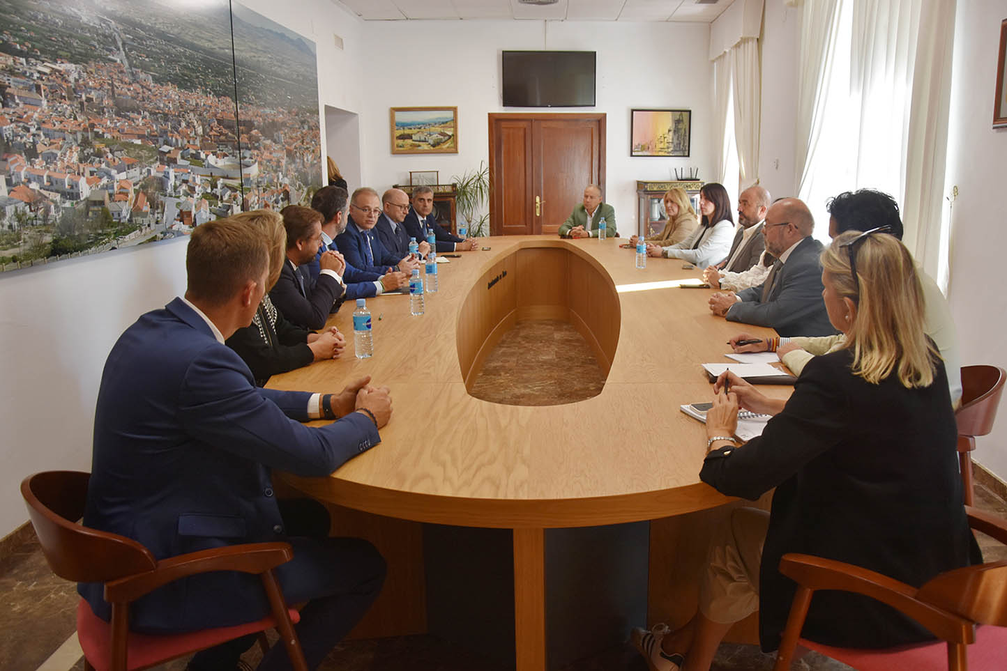 Ya en el Ayuntamiento, el consejero firmó en el Libro de Honor y recibió una reproducción de la Dama de Baza como obsequio del alcalde. Posteriormente, en una reunión con el equipo de gobierno, se abordaron temas clave como la modernización de los regadíos, que dependen de concesiones de agua de la Confederación Hidrográfica, y cuestiones relacionadas con la agricultura ecológica. Fernández-Pacheco destacó la colaboración de la Junta de Andalucía para afrontar los retos del municipio y calificó la reunión como «muy fructífera», añadiendo que “El diálogo y la colaboración institucional no es que sean necesarios, es que son obligados”.