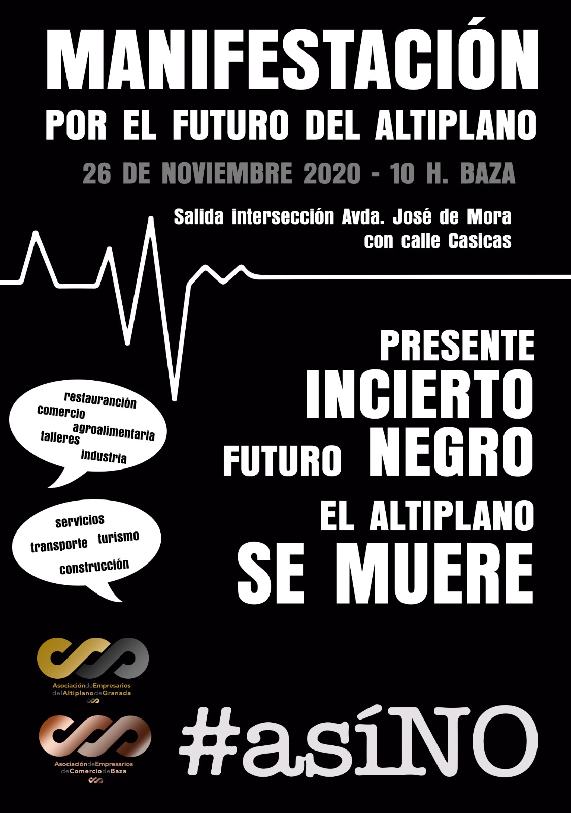 La Asociación de Empresarios del Altiplano convoca una manifestación en defensa del comercio, la hostelería y las empresas de la comarca. Una convocatoria que lleva a la manifestación convocada para el próximo jueves 26 de noviembre, a las 10:00 h., “para defender a nuestro comercio, a nuestros bares y restaurantes y a todas las empresas de nuestra comarca que tan mal los están pasando con esta situación”.