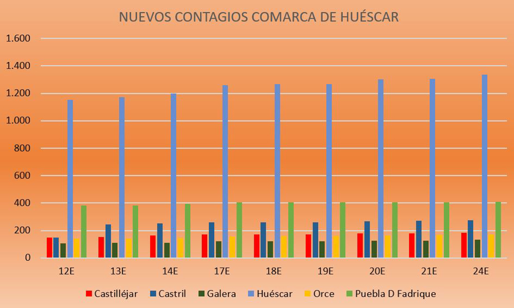 Destaca el caso de Freila, el municipio de menor población que solo sumaba un caso más, a pesar de lo que bajaba su tasa de incidencia por debajo de los mil casos y está ya con solo un caso de confirmados PDIA para poner a cero la incidencia a 7 días.