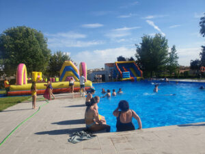 Se trata de un recinto municipal que cuenta con una piscina adultos, otra para los más pequeños, una zona de césped y sombrillas y un bar con terraza, donde el Ayuntamiento de Cuevas del Campo organizó una jornada muy especial, para la inauguración de la nueva temporada, con castillos hinchables y juegos acuáticos, para los más pequeños.