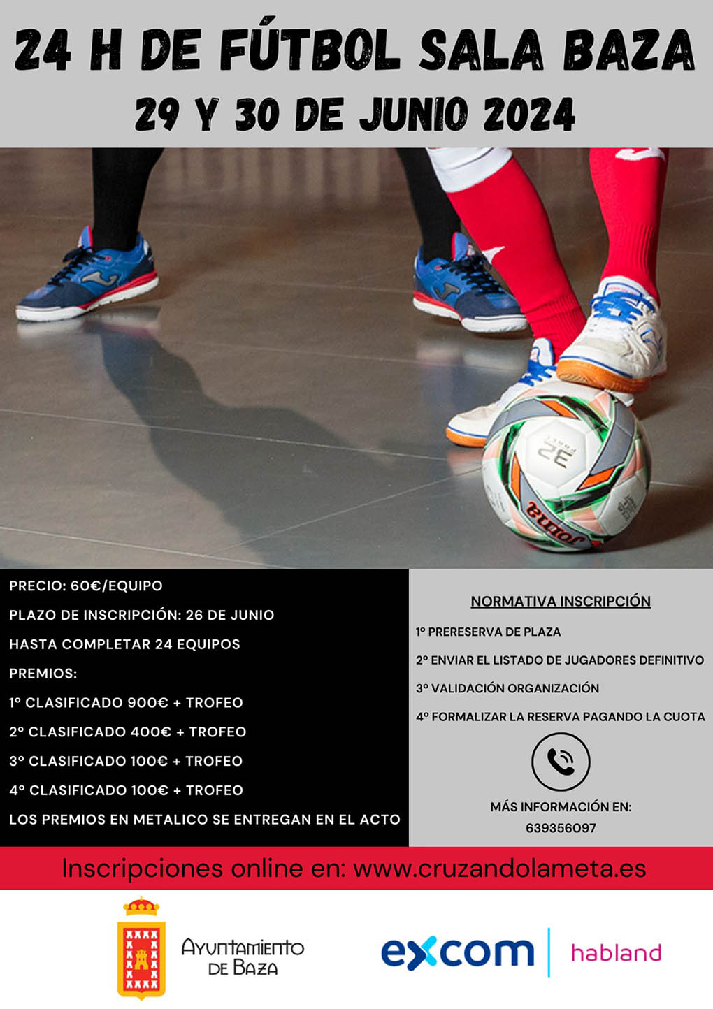 Las 24 Horas de Fútbol Sala de Baza 2024 otorgarán cuatro premios a los cuatro primeros equipos clasificados, por importe de 900, 400, 100 y 100 euros, a los que se añadirá el correspondiente trofeo, en cada caso.