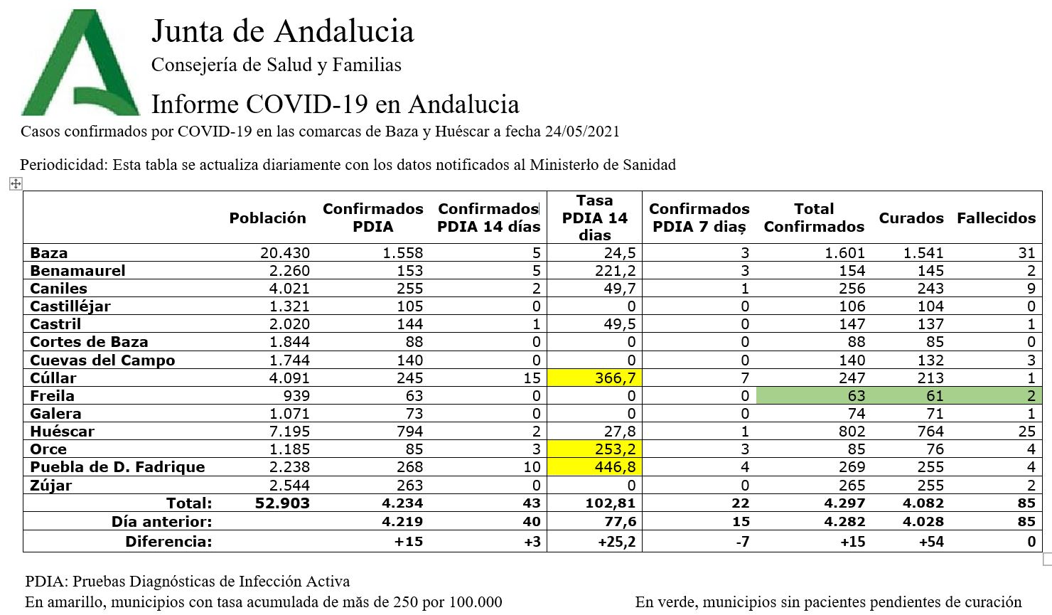 Los primeros datos tras el fin de semana añaden 7 contagios nuevos a la estadística del AGS Nordeste de Granada, donde aumentan a cinco los hospitalizados. Datos referidos al sábado 23 y domingo 24 de mayo que, como suele ser habitual, fueron jornadas de mayor relajación de la actividad sanitaria, a pesar de lo cual fueron validados un total de 7 resultados positivos en el territorio del AGS Nordeste de Granada, hasta las cero horas del día 25, a través del laboratorio provincial o mediante test de antígenos, realizados en el Sistema Sanitario Público y sin que se incluyan en ellos los resultados positivos obtenidos en instituciones privadas.