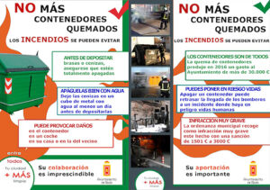 El servicio municipal advierte de los daños materiales, que cada año suponen miles de euros en reposición, y también de las consecuencias humanas: un incendio de este tipo puede retrasar la llegada de los bomberos a una emergencia real, comprometiendo la seguridad de otras personas. Además, recuerda que la quema de contenedores se considera infracción muy grave, con sanciones que pueden oscilar entre 1.501 y 3.000 euros según la ordenanza vigente.