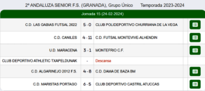 Resultados y clasificación tras la última jornada en el grupo granadino de la Segunda Andaluza Sénior de Fútbol Sala. (Clicar en las imágenes para ampliarlas):