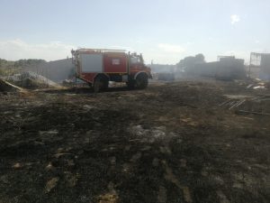 Tres dotaciones del parque de bomberos bastetano se desplazaron pasadas las tres y media de la tarde hasta el paraje de La Teja para apagar las llamas que se habían producido en una zona de hábitat de cuevas. El fuego pasó con rapidez hasta los frutales, que quedaron muy afectados por las llamas.