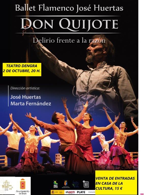 También el sábado 2 de octubre, pero a las ocho de la tarde y en el Teatro Dengra, habrá ocasión de disfrutar de un gran espectáculo del Ballet Flamenco José Huertas: «Don Quijote. Delirio frente a la razón», un espectáculo con la dirección artística de José Huertas y Marta Fernández. Se trata de un montaje de danza española/flamenca que baila la vida de este Hidalgo Caballero como baila el pueblo: festejando, riendo y cantando el camino deseado. Es una propuesta del Ayuntamiento de Baza y el programa estatal de artes escénicas Platea, para el que ya se pueden adquirir las entradas en la Casa de la Cultura.