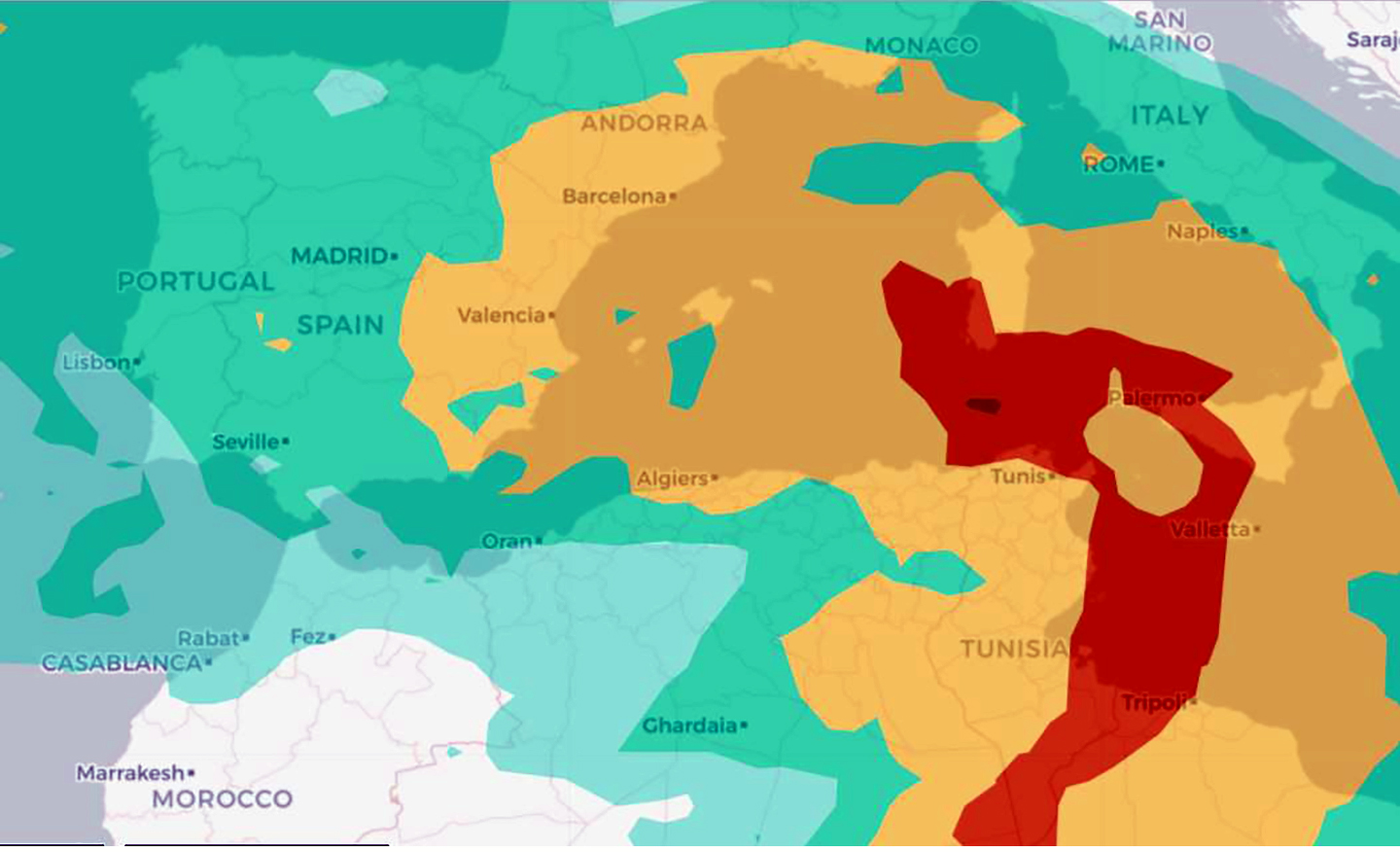 Este centro pone este tipo de predicciones en su servidor a disposición de actividades que tienen fines investigadores y educativos, sin que puedan utilizarse con fines comerciales y ahora avisan de la posibilidad el retorno de la arena del desierto, con una nueva entrada de polvo desértico en suspensión, procedente del norte de África, la cual repetiría escenas similares a las que hemos conocido en esta zona los días 15, 17 25 y 26 de marzo.