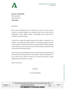 Andalucía pide al Gobierno una “respuesta homogénea”  en “todo el territorio” para lo que  el consejero de Salud y Familias remite una carta al ministro de Sanidad. El Gobierno Andaluz ha pedido al Ministerio de Sanidad que establezca y coordine “una respuesta homogénea” ante el coronavirus y unos criterios que se apliquen “en todo el territorio nacional”.