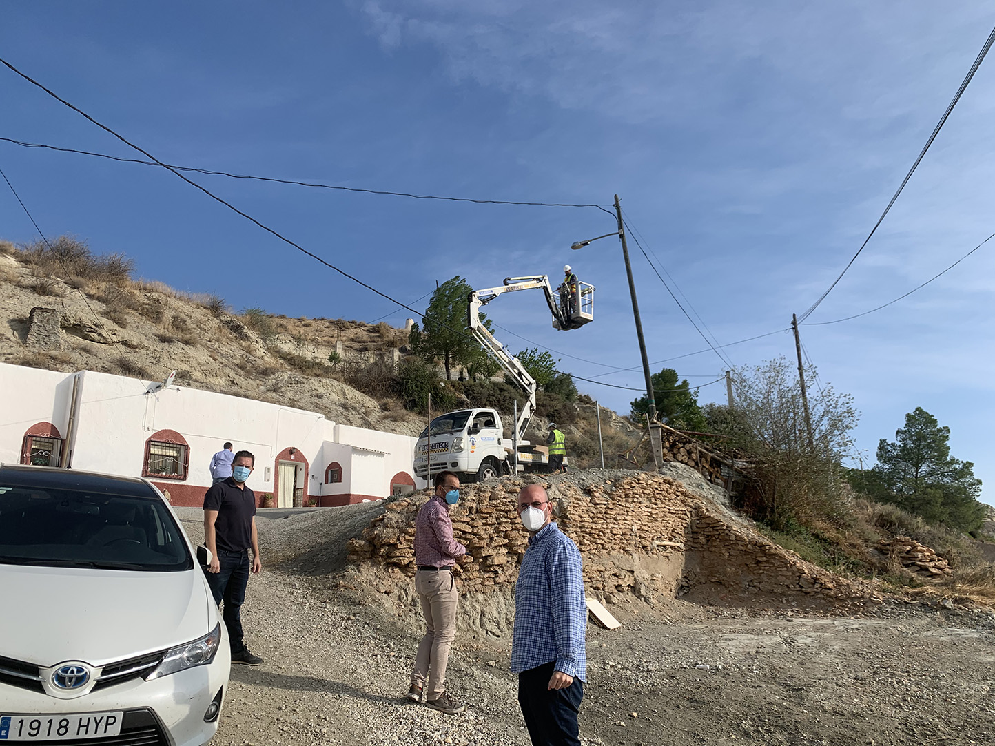 La modernización del alumbrado público ya se hace visible en varios municipios de la Comarca de Baza. El Presidente de la Mancomunidad de Municipios de la Comarca de Baza, Miguel Román, y los alcaldes de Benamaurel, Cuevas del Campo y Zújar han llevado a cabo sendas visitas para comprobar sobre el terreno el avance de las obras de renovación integral del alumbrado. Los trabajos, adjudicados a la empresa Albaida Infraestructuras S.A., se desarrollan a buen ritmo, sin afectar al servicio público, sustituyéndose una por una todas las luminarias y cuadros de mando, así como cables, soportes y otros elementos accesorios, en el supuesto de encontrarse en mal estado de conservación.