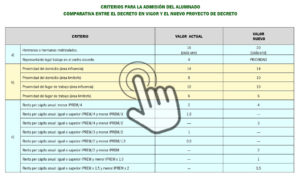 Respecto al criterio de discapacidad o trastorno del desarrollo aumenta tanto la puntuación como los supuestos y gradación de discapacidad del alumno o alumna, de sus tutores o guardadores legales o de sus hermanos o hermanas.