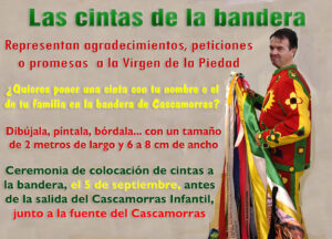 Así, una de las iniciativas que este año se ha puesto en marcha está relacionada con las cintas que adornan la bandera que Cascamorras lleva como estandarte y que tradicionalmente son colocadas tras la ceremonia religiosa de su presentación, que cada 15 de agosto se celebra en la accitana Iglesia de San Miguel o en algún otro acto organizado por la Hermandad de la Virgen de la Piedad accitana.