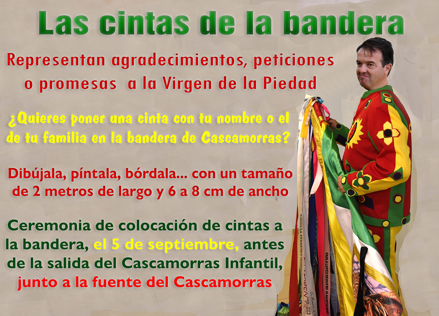 Pues bien, este año se va a dar opción, a los bastetanos que lo deseen, a que pongan su cinta en la bandera que correrá por las calles bastetanas el próximo 6 de septiembre, algo que se hará en un acto que tendrá lugar antes del inicio del Cascamorras Infantil, junto a la fuente de la Plaza de las Eras.
