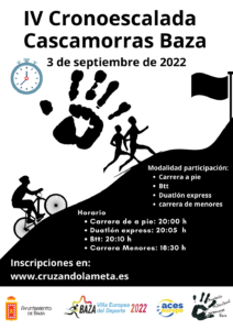 Vuelve de la Cronoescalada Nocturna Cascamorras, en su V edición. Un prueba que se ha asentado en el calendario deportivo de finales del verano en nuestra ciudad, el cual se encuentra ya en la semana de su celebración. Esta actividad está dentro del circuito de carreras populares y colaboran como es habitual la Asociación española contra el Cáncer y las Asociación Multicultural Cascamorras Baza.
