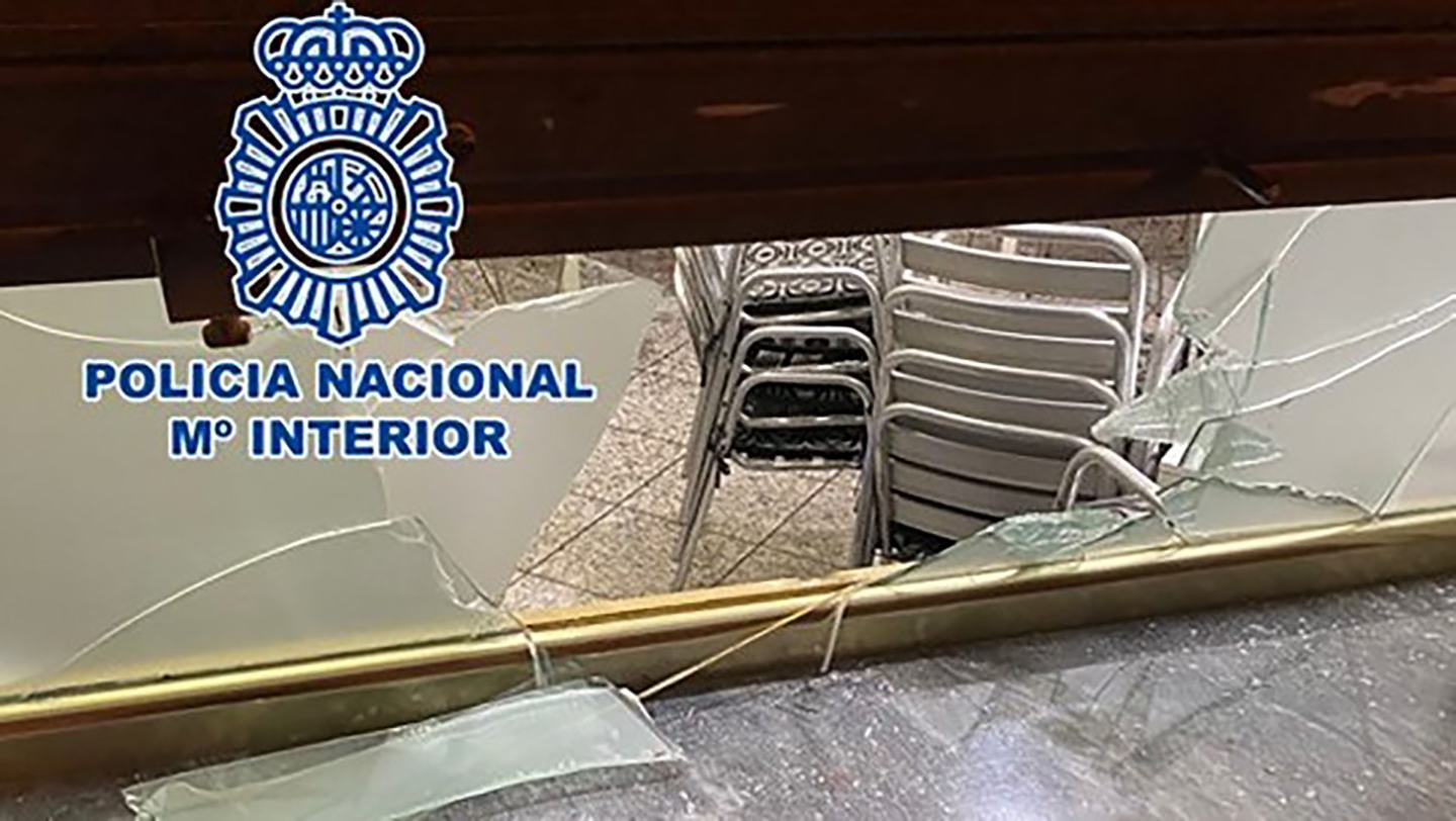 Mientras los investigadores realizaban las pesquisas para recuperar los efectos sustraídos e identificar al posible autor, tuvo lugar el segundo suceso del que tuvieron conocimiento tras recibir la llamada de vecinos informando sobre ruidos en el interior de un bar cuyo escaparate habían fracturado lanzándole la tapa de una alcantarilla próxima.