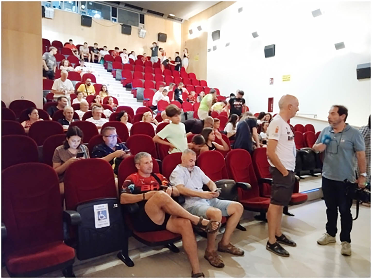 Mientras tanto, en Baza se concentraba la mayor expectación en el Salón Ideal, donde unas 80 personas presenciaron la transmisión de la carrera en su pantalla, gracias al siempre buen hacer de CyD, aunque con menor presencia de público del esperado, en lo que probablemente influyó el horario y el tratarse de una jornada laborable. A destacar la presencia de los padres y algunos familiares más de David Valero, así como una buena representación del BTT bastetano.