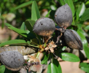 Los daños de la avispilla del almendro inicialmente se presentan en forma de picaduras en la cáscara, momento en el que la avispilla pone los huevos en el interior, pasan a estado de larva y se alimentan de la almendra. El síntoma más característico es la presencia de frutos más pequeños, vacíos, sin pepita, con aspecto deshidratado, por lo que se recomienda, para no confundirlos con otros frutos que no hayan cuajado, abrirlos y observar la presencia de la larva en su interior. Las almendras suelen presentar los primeros síntomas en torno a junio o julio, siendo la práctica más efectiva para su disminución, la retirada y eliminación, in situ través de quemas, de la mayor cantidad posible de almendras momificadas tras la recolección, incluso los que se puedan encontrar sobre el suelo.