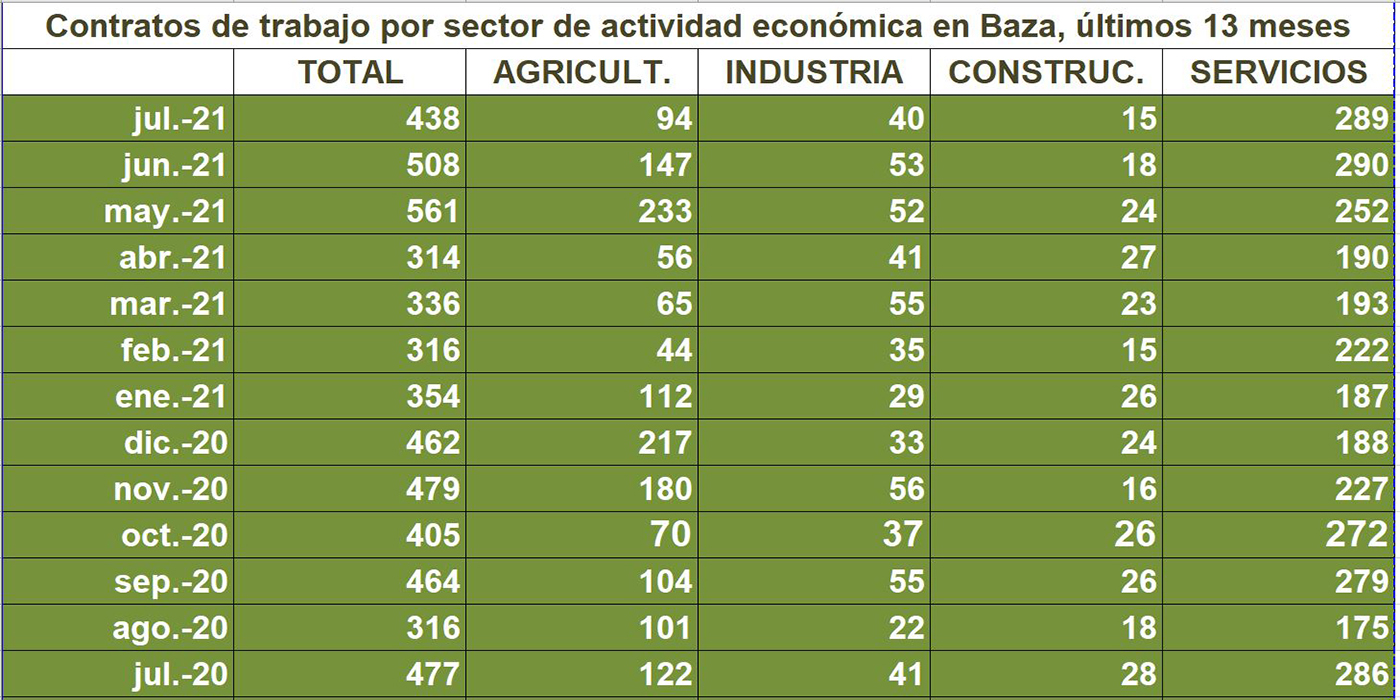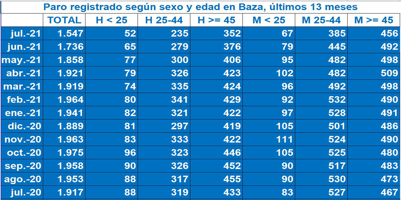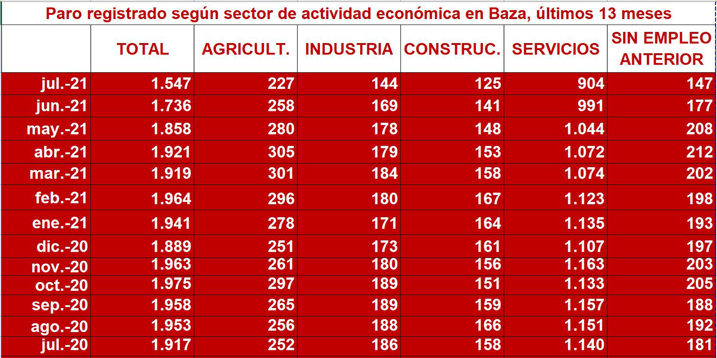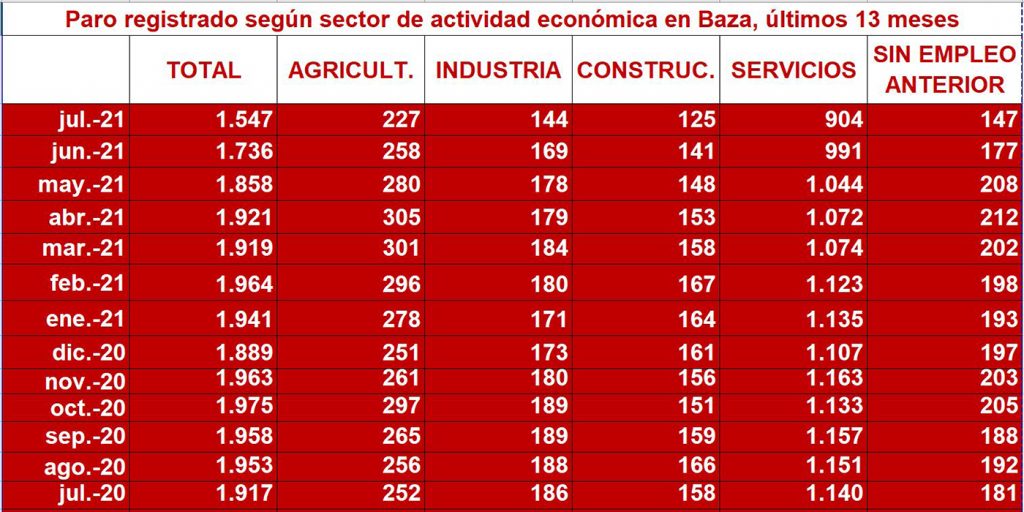 Importante descenso de las cifras del paro en Baza, al finalizar el mes de julio. Abrimos hoy con una información asidua en nuestro Noticiario, pero que este mes se ha venido retrasando por una serie de circunstancias coincidentes, a pesar de lo cual no queremos dejar sin estos datos a esos lectores que nos consta que siguen con interés este tipo de informaciones.