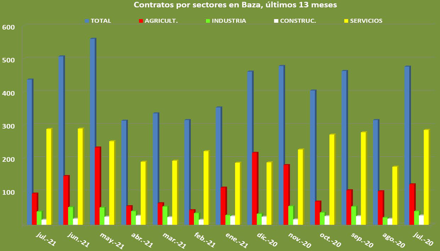 Destacar también que la mayor parte de los contratos se firmaron con destino al sector servicios, mientras que Agricultura e industria tuvieron un crecimiento menor y la construcción sigue en la misma línea de estar a la cola en las contrataciones.