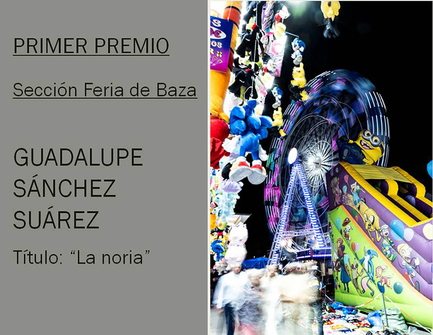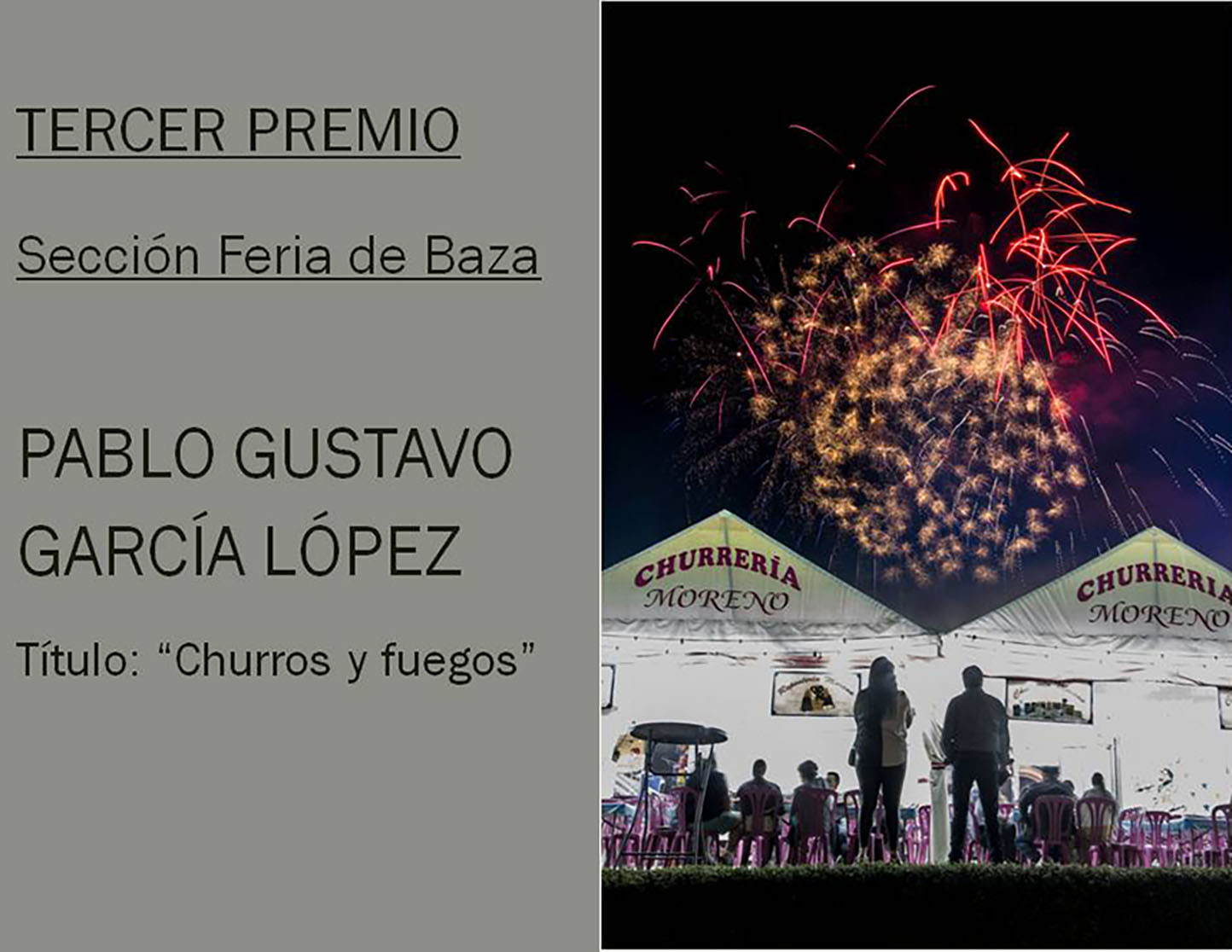 En la categoría “Feria de Baza”, con 32 imágenes presentadas, el primer premio (250 euros) fue para “La Noria”, también de Guadalupe Sánchez. El segundo premio, de 150 euros, lo obtuvo “Entre alamares y corales”, de María Gallardo, y el tercero, de 100 euros, fue para “Churros y fuego”, de Pablo G. García.