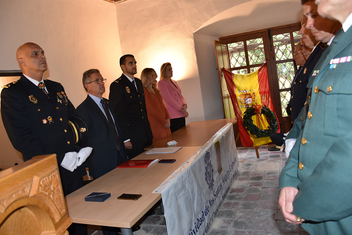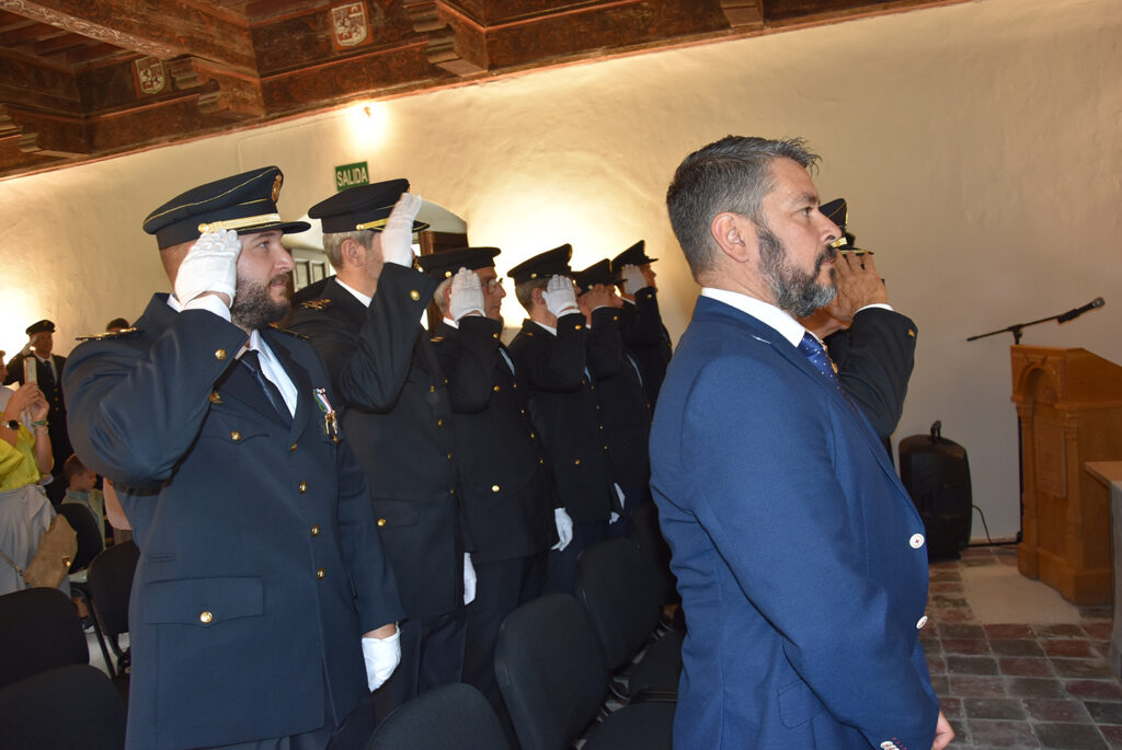 El Palacio de los Enríquez acogía ayer el acto institucional de conmemoración de la festividad del Día de la Policía. El Palacio de los Enríquez fue este lunes el marco elegido para la celebración del acto institucional de conmemoración de la festividad del Día de la Policía, organizado por la Comisaría Local de la Policía Nacional en Baza y al que, como es habitual, asistieron miembros del cuerpo de la Policía Nacional, pero también de la Policía Local, Guardia Civil y Servicio de Bomberos, así como el alcalde de la ciudad, Manolo Gavilán, el concejal de Seguridad, José Antonio López Cañadas, y otros miembros de la corporación municipal.