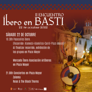 La ciudadanía y visitantes podrán disfrutar el sábado 22 de octubre, a partir de las seis y media de la tarde, de un pasacalles íbero, con todos los participantes, que recorrerá un itinerario que irá desde La Alameda, por Caños Dorados, Alamillos y Carril, hasta la Plaza Mayor, donde el pasacalles finalizará para dar paso a una exhibición de los grupos participantes en este evento.