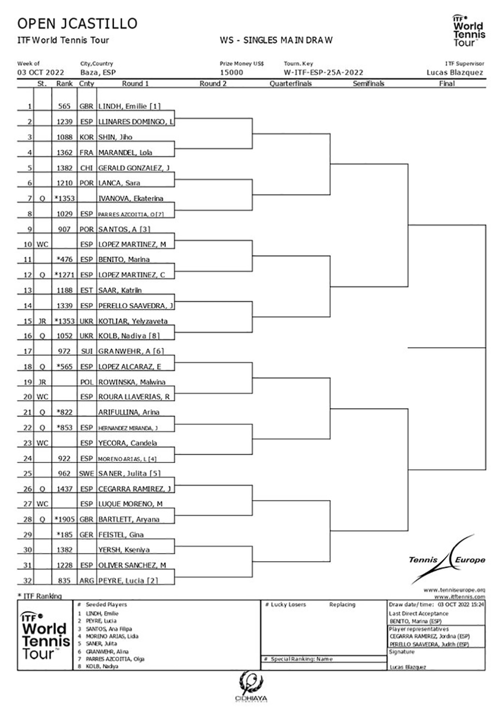 Ayer finalizaban los encuentros de la fase previa del Open JCastillo de Tenis que organiza el CT Cid Hiaya, donde hoy mismo se inicia la fase final del torneo. Ayer lunes finalizaba la fase previa del ‘Open JCastillo SCO W15’, lo que sirvió para dar a conocer las ocho tenistas que han entrado al cuadro principal, después de superar sus dos primeros partidos.