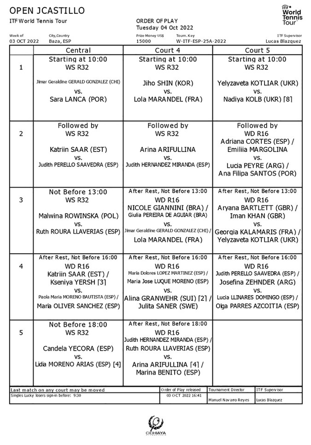 Una fase previa que se iniciaba el pasado domingo y que daba al ITF W15 Baza, un torneo que supone el debut de nuestra ciudad en el contexto internacional del tenis, gracias a la iniciativa y a la labor del Club de Tenis Cid-Hiaya. De esta forma se pudo asistir a una gran primera jornada con 16 encuentros. entre los que se vieron algunos interesantes partidos que se decidieron por pequeños detalles y en los que el público que estuvo presente se deleitó con algunos de estos duelos, que dejaron entrever el gran nivel presente en esta primera edición del W15 ‘Open JCastillo SCO W15’.