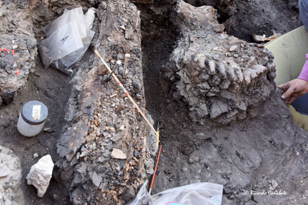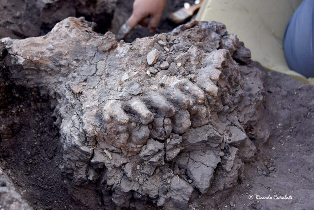 Mandíbula y defensa de mastodonte del Yacimiento Baza-1