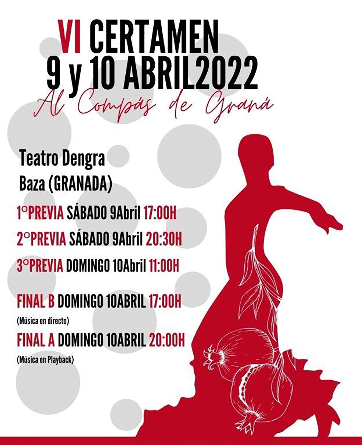 Baza acoge el próximo fin de semana el VI Certamen “Al Compás de Graná”. Baza será este sábado 9 de abril y el domingo día 10 sede del VI Certamen “Al Compás de Graná”, un certamen coreográfico de baile flamenco de academias y escuelas municipales granadinas.