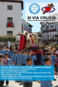 El Colegio de la Presentación volverá a realizar el que será su XI Vía Crucis, el próximo viernes. El viernes 8 de abril, el Colegio de la Presentación realizará su tradicional Vía Crucis, después de dos años de suspensión motivada por las restricciones sanitarias, tras lo que volverá a recorrer las calles de la ciudad y a lo que quedan invitadas todas las personas, familias, centros educativos e instituciones que deseen acompañar al Colegio de la Presentación en esta actividad escolar.