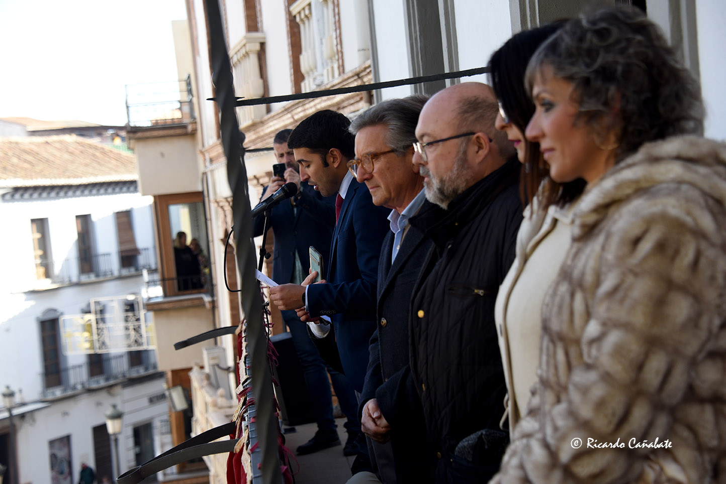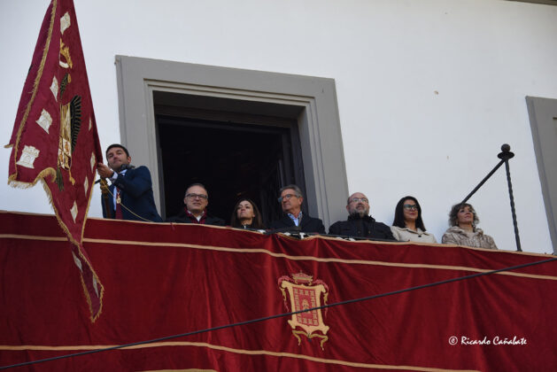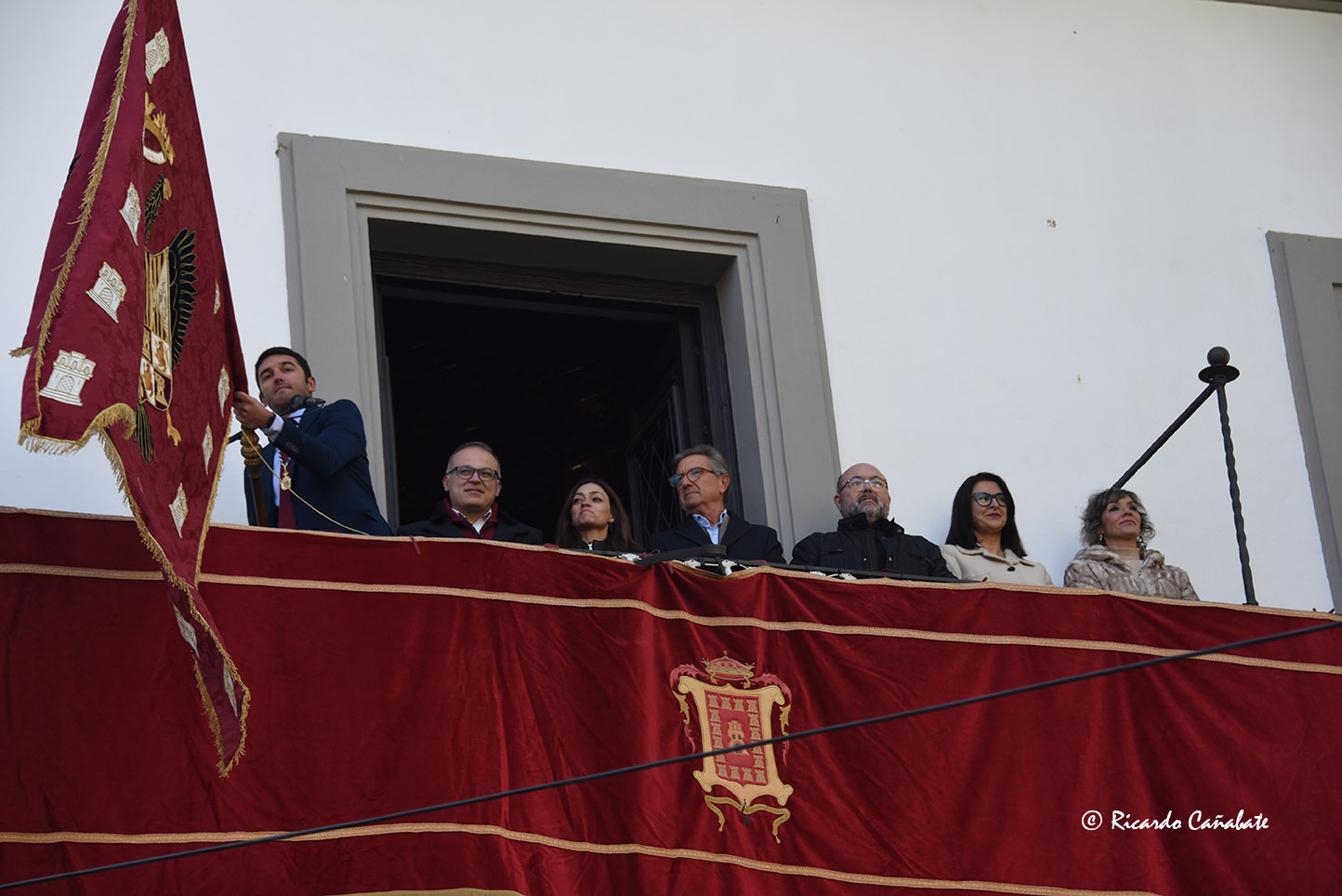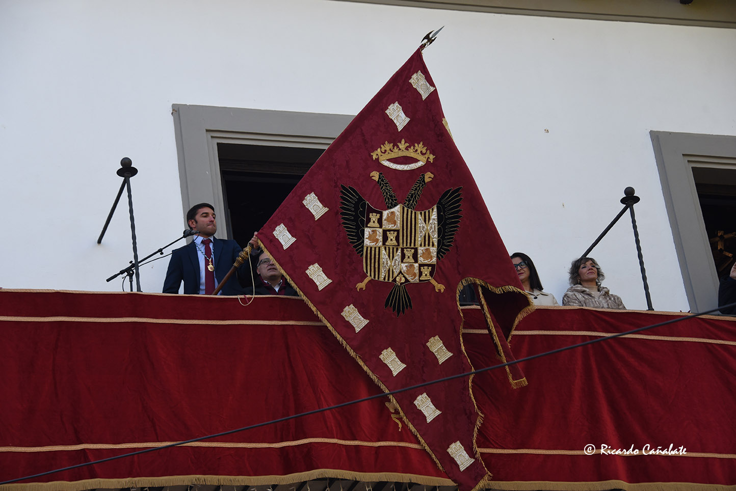 Como marca el protocolo, el concejal más joven, Antonio Vallejo Magdaleno, aparecía en el balcón principal de la antigua Casa de Cabildo, hoy Museo Arqueológico Municipal, portando el Pendón Real que después ondearía hasta tres veces, apelando a la memoria de los ínclitos reyes Isabel y Fernando, así como gritando e, tradicional “Baza” que vez tras vez fue respondido con el “Qué” de rigor de quienes ocupaban una gran parte de la Plaza Mayor, sonando cada vez un pasaje del Himno Nacional.