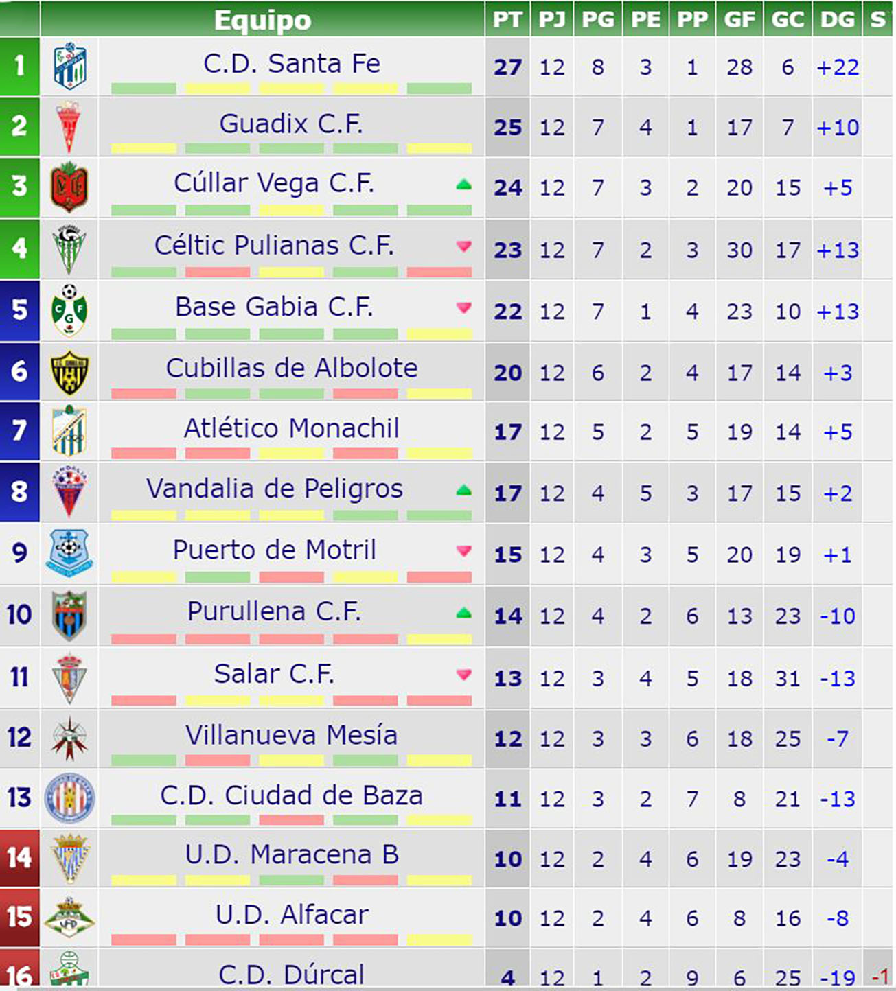 Resultados y clasificación en el grupo granadino de la Primera Andaluza Senior de fútbol, tras la última jornada (Clicar en las imágenes para ampliar):