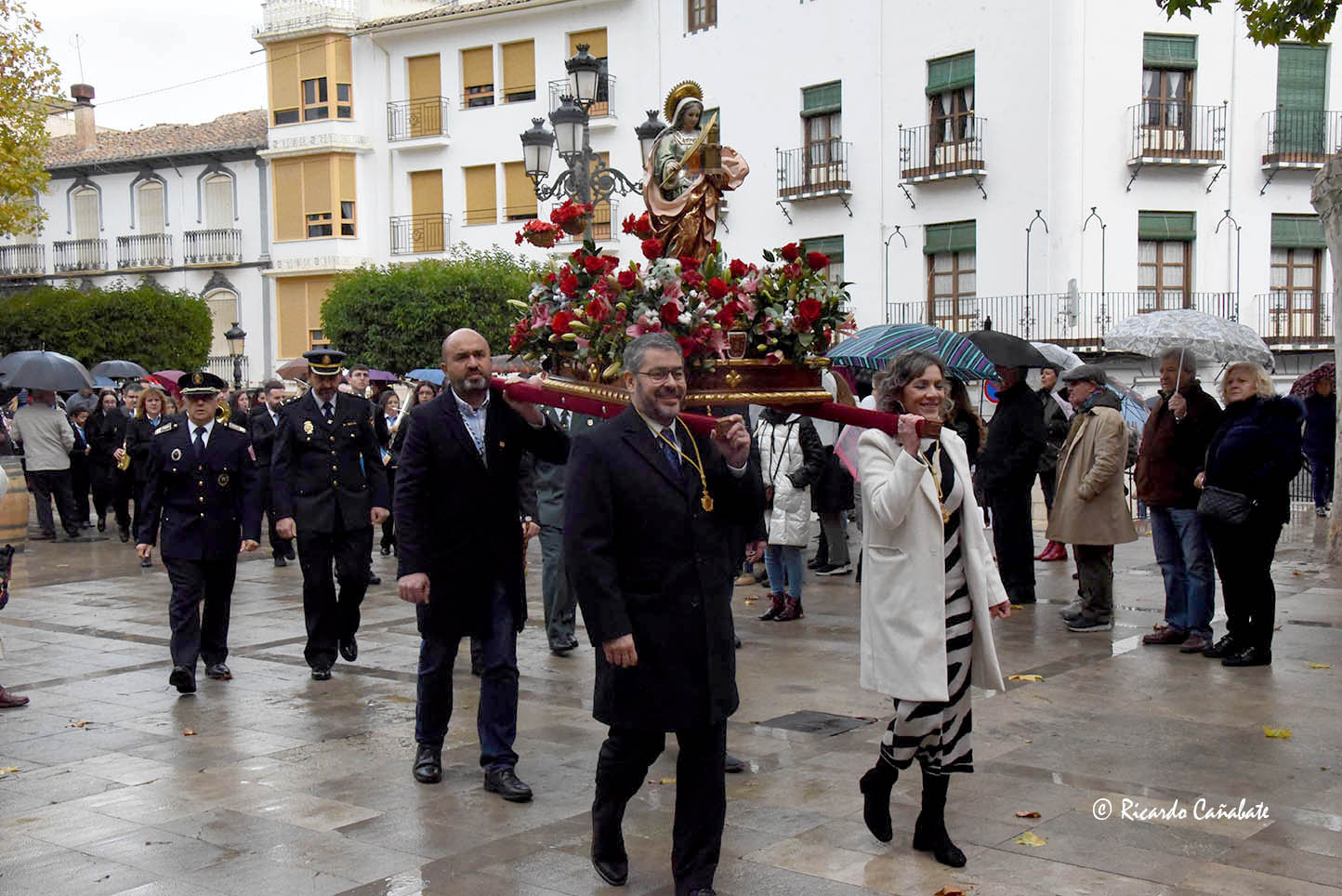 La festividad de Santa Bárbara volvía a celebrarse ayer con la procesión del Ayuntamiento a la Iglesia Mayor, donde se celebró una solemne Eucaristía. Con rigurosa puntualidad, en la mañana de ayer se ponía en marcha la comitiva que, partiendo de la Iglesia Mayor, se dirigía hasta el antiguo Ayuntamiento bastetano, donde permanece durante todo el año la imagen de Santa Bárbara. Una comitiva bajo mazas integrada por una amplia representación de las cofradías y hermandades de nuestra ciudad, así como el clero del arciprestazgo de Baza, llegaba a las puertas de la anterior sede corporativa municipal, donde esperaba una amplia representación de la Corporación Municipal.