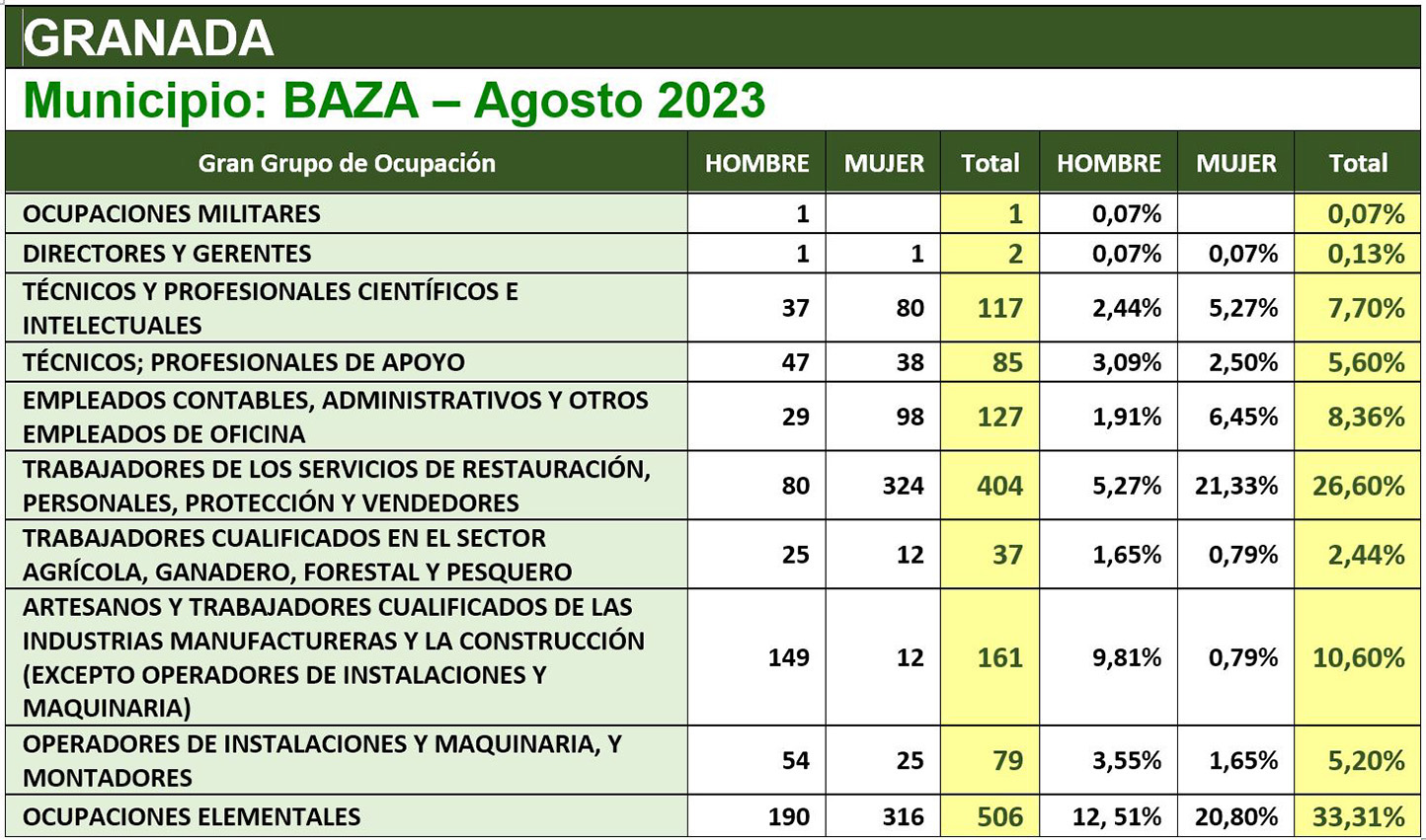 Añadir también que del total de personas desempleadas, 613 son hombres y 906 son mujeres, con lo que se mantiene invariable la brecha que supone el número de trabajadores empleados en Baza, en relación a su sexo
