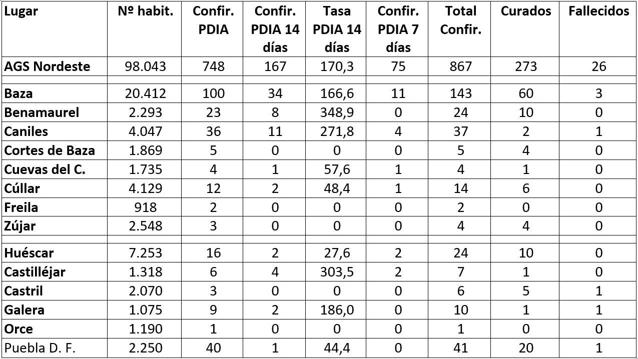 Como se apreciará en los anteriores datos, la mejor noticia llega de municipios de las comarcas norteñas, como La Puebla de don Fadrique, donde esta vez no ha habido casos nuevos y donde la situación se ha invertido hasta el punto de estar más cerca de verse libres de Covid en su municipio.