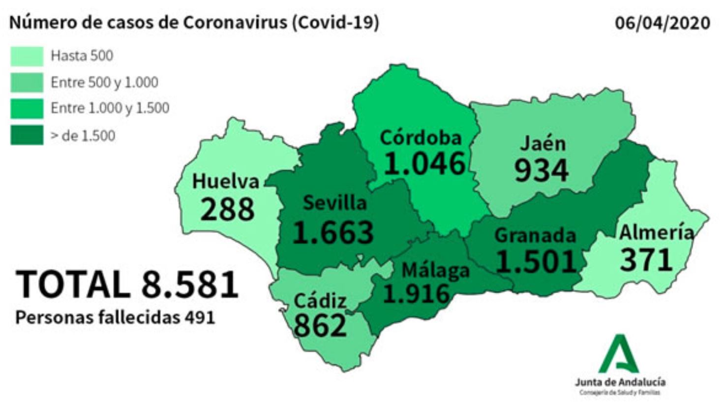 La información de la Junta sobre los casos confirmados de coronavirus en Andalucía incluye datos sobre las diferentes áreas sanitarias. La Consejería de Salud y Familias de la Junta de Andalucía informaba ayer que se han confirmado en Andalucía 280 nuevos casos de Coronavirus en las últimas horas, por lo que el número total de afectados en nuestra Comunidad asciende a 8.581.
