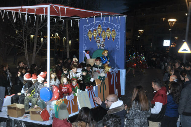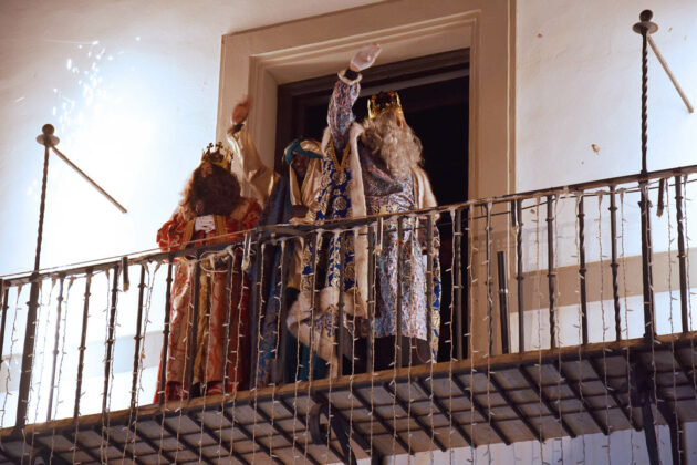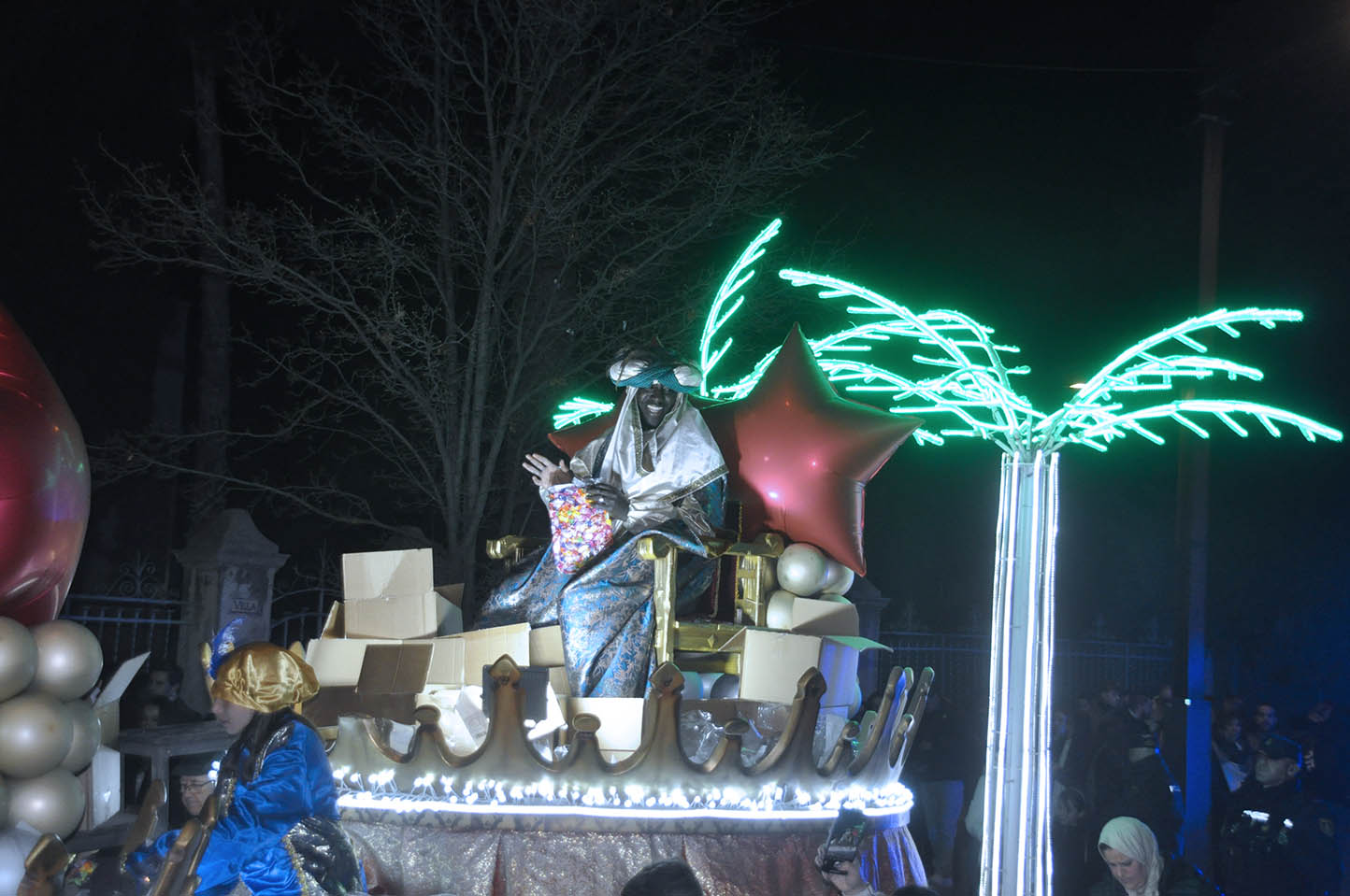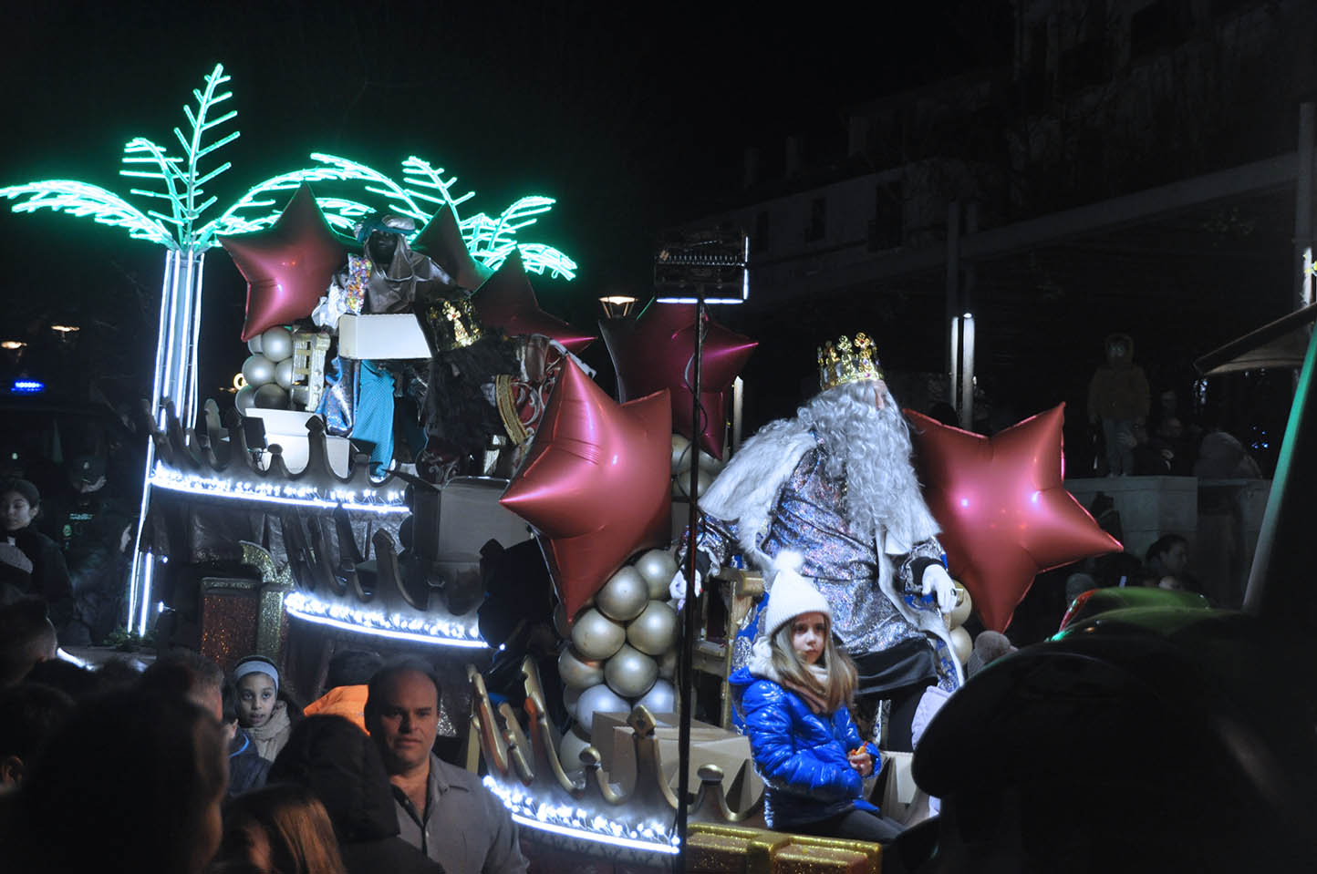 La llegada de los Reyes Magos a la principal plaza de la ciudad estuvo marcada por un espectáculo musical ofrecido por el dúo Jonathan & Desirée, quienes animaron a los presentes mientras esperaban a Sus Majestades. Una vez allí, Melchor, Gaspar y Baltasar saludaron desde el balcón del Museo y enviaron sus mejores deseos para el nuevo año. A continuación, un vistoso espectáculo de luz, fuego y pirotecnia iluminó la plaza, culminando con la instalación de los tronos donde los Reyes recibieron, uno a uno, a los niños que se acercaron para saludarlos y recoger un regalo.