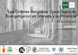 El Centro Asociado a la UNED de Baza presentaba ayer el Curso de Extensión Universitaria “Las Órdenes Religiosas: cinco siglos de evangelización en Granada y su Provincia”. Una presentación que tenía lugar ayer en el Salón de Actos del Centro Asociado de esta institución y que se llevará a cabo del 26 al 28 de abril de 2023 de forma online o presencial, contado con el patrocinio del Ayuntamiento de Baza y la colaboración de la Orden de Predicadores y del Colegio Mayor Santa Cruz la Real de Granada, la asociación ‘Péndulo. Papales de Bastitania’, el Centro de Estudios ‘Pedro Suárez’, el Centro de Estudios Históricos de Granada y su Reino, y la Diócesis de Guadix-Baza.