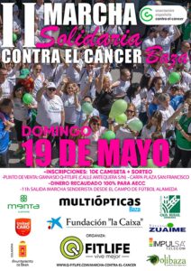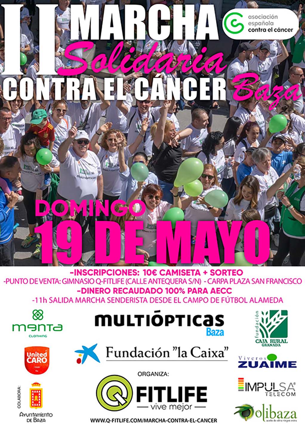 Abiertas las inscripciones para la II Marcha Solidaria Contra el Cáncer del domingo 19 de mayo, cuya recaudación irá a parar, íntegramente, a la AECC. La mañana del domingo 19 de mayo nos vuelve a traer una nueva cita con la II Marcha Solidaria Contra el Cáncer, un evento que cuenta con la colaboración del Ayuntamiento de Baza.