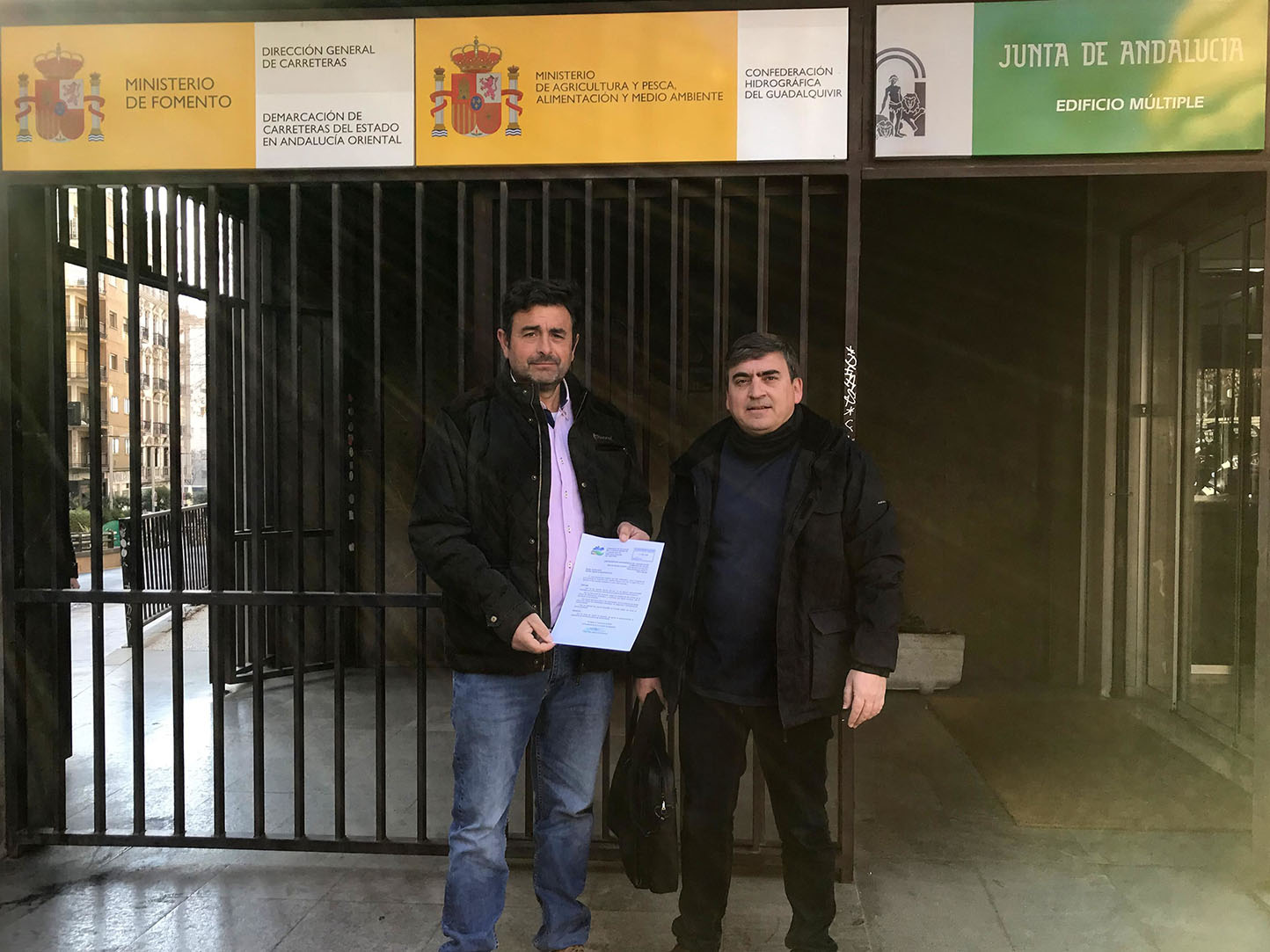 A la izquierda José Antonio Azor, Presidente de la Comunidad junto al Ingeniero Pedro Castillo, tras la entrega de documentación en la CHG.
