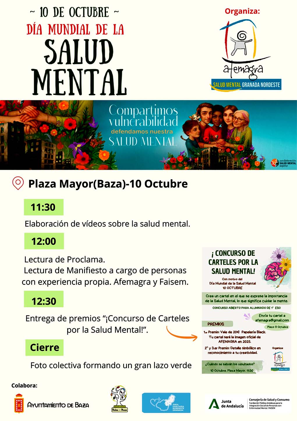 La conmemoración está organizada por la Asociación Afemagra–Salud Mental Granada Nordeste, con la colaboración del Ayuntamiento de Baza, la Junta de Andalucía y el Programa RELAS, que agrupa a diferentes entidades y colectivos de la ciudad y la comarca comprometidos con la promoción de la salud.