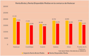 Los datos oficiales, elaborados a partir de las declaraciones del IRPF recogidas por la Agencia Tributaria, permiten leer la economía local en dos claves: por un lado, la capacidad de generación de renta en la cabecera comarcal —donde se concentran la mayor parte de los empleos, servicios y empresas—; por otro, la fragilidad de muchos municipios pequeños, con economías locales más dependientes de la agricultura, la renta de personas jubiladas y el empleo estacional. La propia metodología de la estadística distingue renta bruta y renta disponible y recoge partidas como rendimientos del trabajo, rentas de actividades económicas y rentas exentas, lo que ayuda a perfilar mejor esas diferencias territoriales.