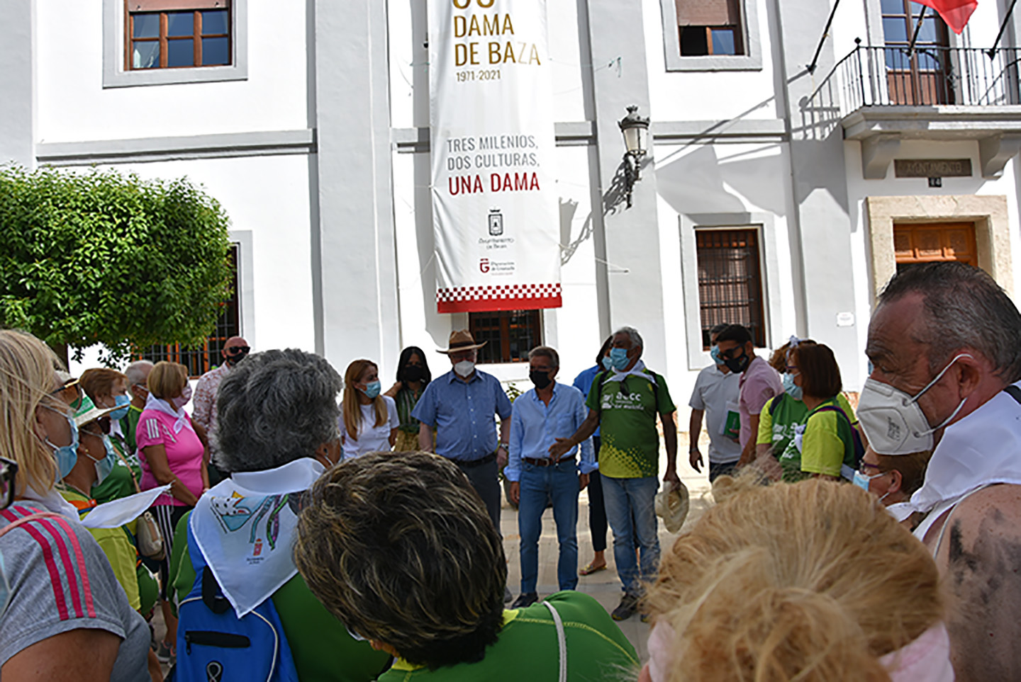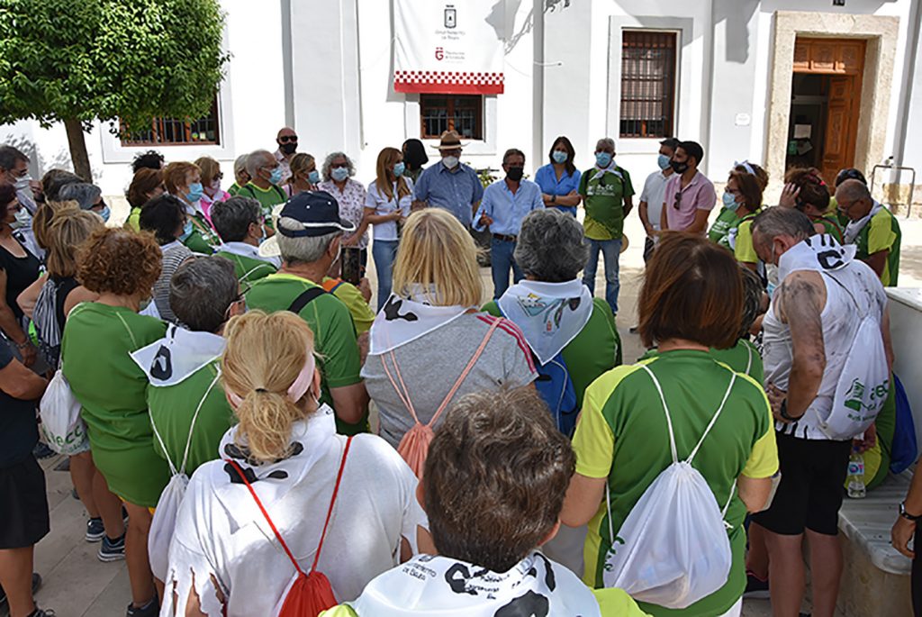 La visita finalizó en la Plaza Mayor, donde el grupo de senderistas fue recibido por el alcalde, Manolo Gavilán y algunos miembros de su equipo de Gobierno. “Habéis hecho un recorrido por nuestra historia en este día en el que estaríamos esperando los tres cohetes previos a las seis de la tarde para iniciar la carrera del Cascamorras. Este año no puede ser, pero ojalá el próximo podamos correrla como todos