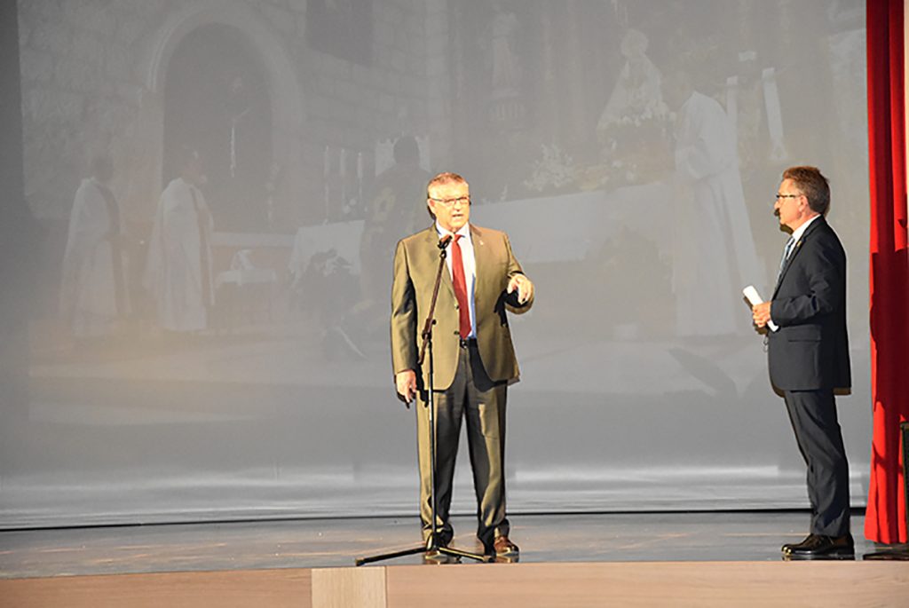 A continuación se ha proyectó el vídeo “Cultura, fiesta y patrimonio siempre vivos”, un recorrido metafórico por la carrera del Cascamorras, desde las Arrodeas hasta la Merced, a través de algunos de los artistas de Baza. La concejala de Cultura, Maribel Cano, explicó después, paso a paso, el sentido de cada una de las imágenes y de las ubicaciones elegidas para rodarlas, dando como resultado final este trabajo que consiguió emocionar a los asistentes demostrando que, a pesar de todas las dificultades, la Cultura sigue viva en Baza. El Dúo Alma, compuesto por Alejandro Baena y Miriam León, fue el encargado de la parte musical del acto. Primero interpretaron las “Sevillanas del Cascamorras” acompañados al baile por bailaoras de la Escuela Municipal de Flamenco; y, ya hacia el final del acto, una sentida plegaria musical a la Virgen de la Piedad, a la que José Antonio Escudero asistió solemnemente sobre el escenario.