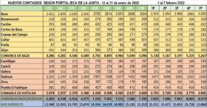 Todo ello en el día en que la ciudad de Baza, con 22 contagios nuevos, superaba la cifra de 3.000 personas contagiadas desde que se iniciara la pandemia. Del resto de municipios, destacar también los 18 contagios que agregaba Huéscar, mientras que el resto de municipios mantienen esta cifra en la línea de los últimos días: 4 contagios más para Benamaurel, Caniles y Cortes de Baza; 3 más en Cúllar, Orce, Puebla de don Fadrique y Zújar y otros 2 más en Castilléjar -el único municipio que tiene su tasa por debajo de 500-, Cuevas del Campo y Galera, mientras que solo Castril y Freila acabaron el fin de semana sin sumar ningún contagio.