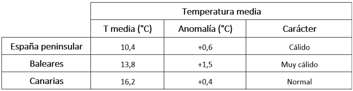 Por lo que se refiere a temperaturas, el mes de marzo ha sido en conjunto cálido, con una temperatura media sobre la España peninsular de 10,4 °C, valor que queda 0,6 °C por encima de la media de este mes (periodo de referencia: 1991-2020). Se ha tratado del decimotercer mes de marzo más cálido desde el comienzo de la serie en 1961 y del sexto más cálido del siglo XXI.