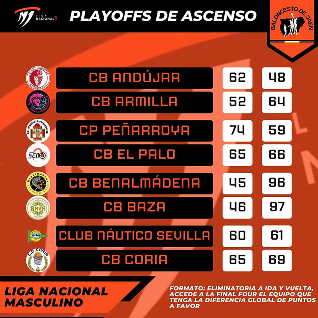 CB Armilla, CD Peñarroya y CB Coria acompañarán al CB Baza en su ascenso a la Liga EBA. Fin de semana intenso el que se producía en la Primera Nacional del baloncesto andaluz, con la disputa de los encuentros de vuelta en los que se tenía que decidir los cuatro equipos que ascenderían a la Liga EBA.