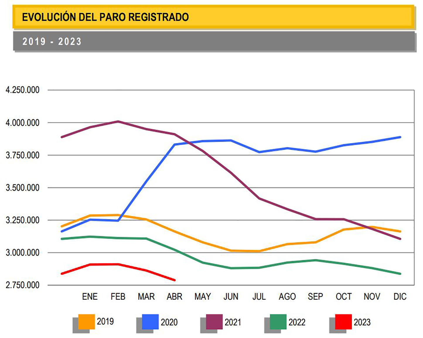 En el acumulado del año, se han formalizado 112.645 contratos por tiempo indefinido hasta abril de 2023, el 43,7% del total de los primeros cuatro meses del año.